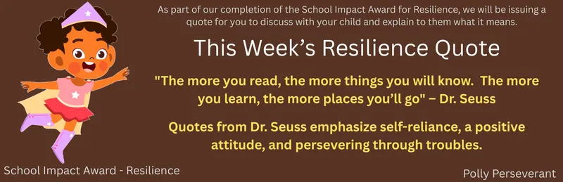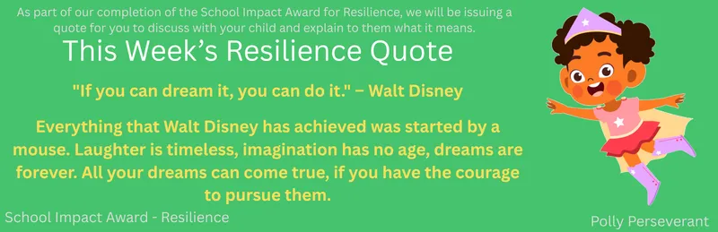As part of our completion of the School Impact Award for Resilience, we will be publishing a quote linked to Resilience for you to discuss with your child and to explain to them what it means.